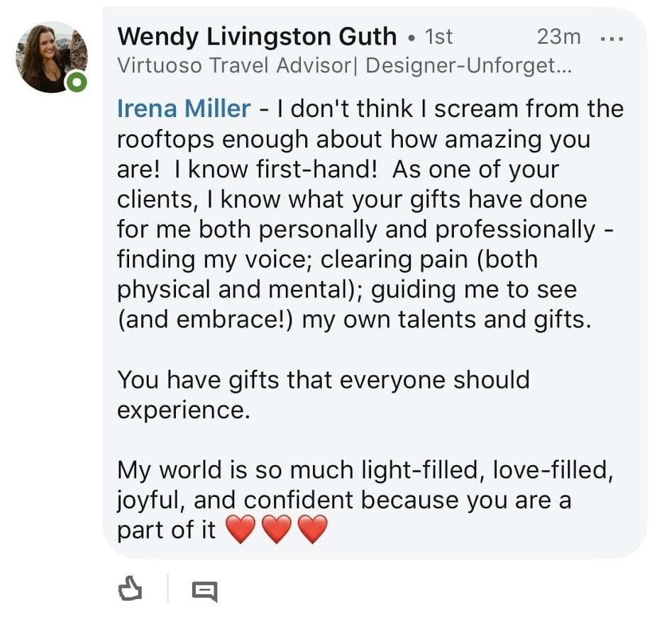 Over the last 25 years, I have been using my unique methods and proven processes to connect to that higher vibration and stop the toxic cycles. My intention today is to continue to be the expert energy guide for visionary empath like you.